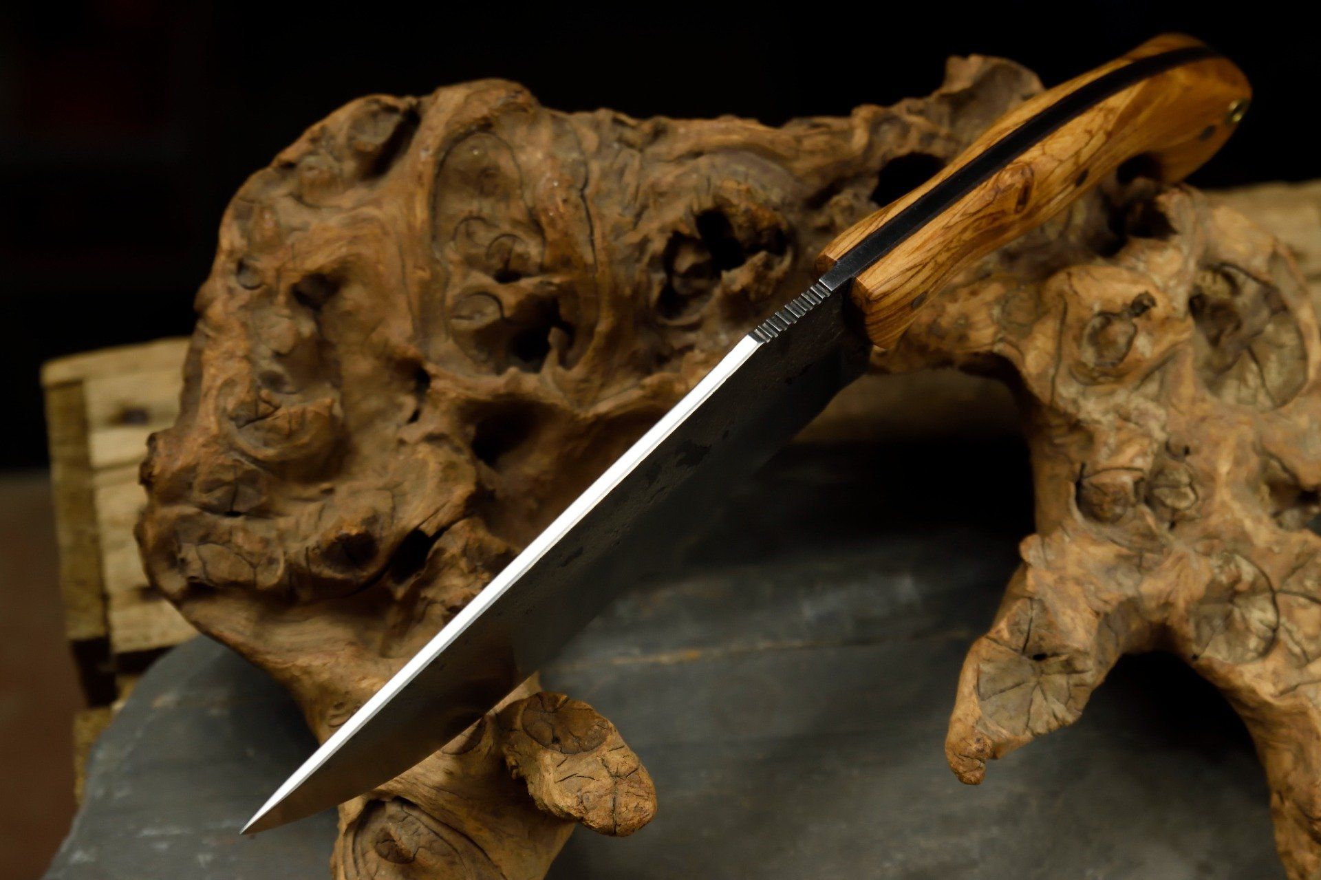 Longueur totale 31 cm pour 17.5 cm de tranchant et 14 cm de manche bois