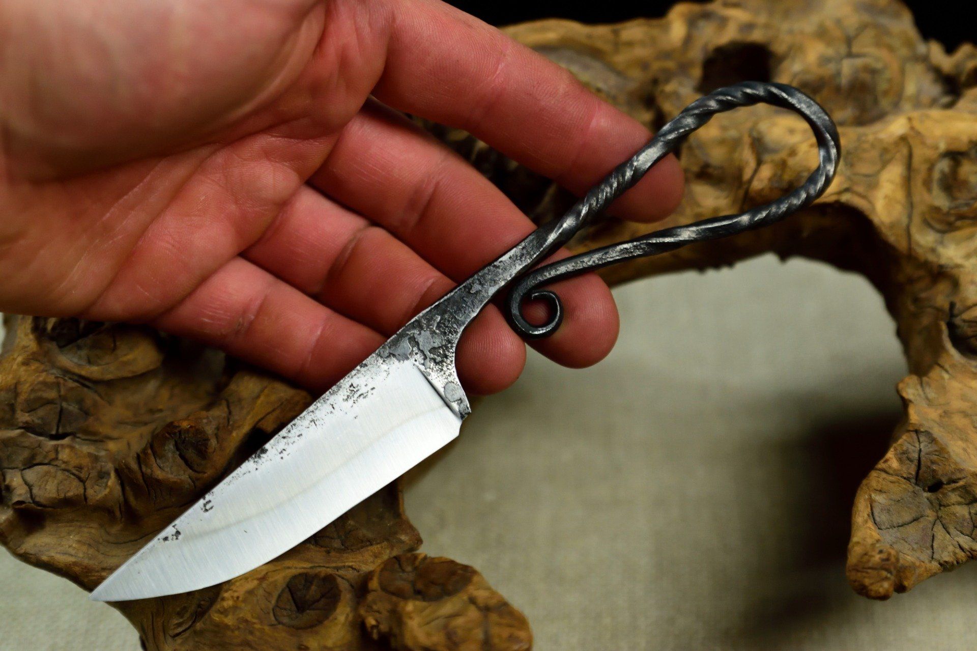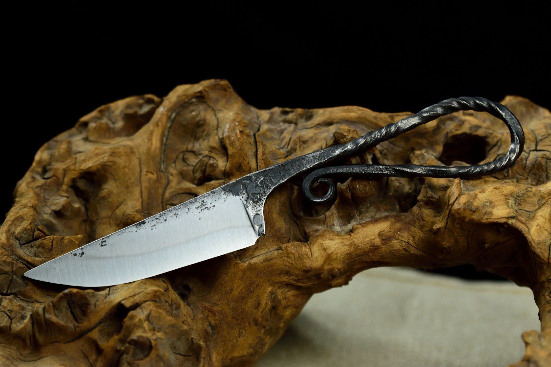 Couteau forgé 19cm, manche à volute torsadé