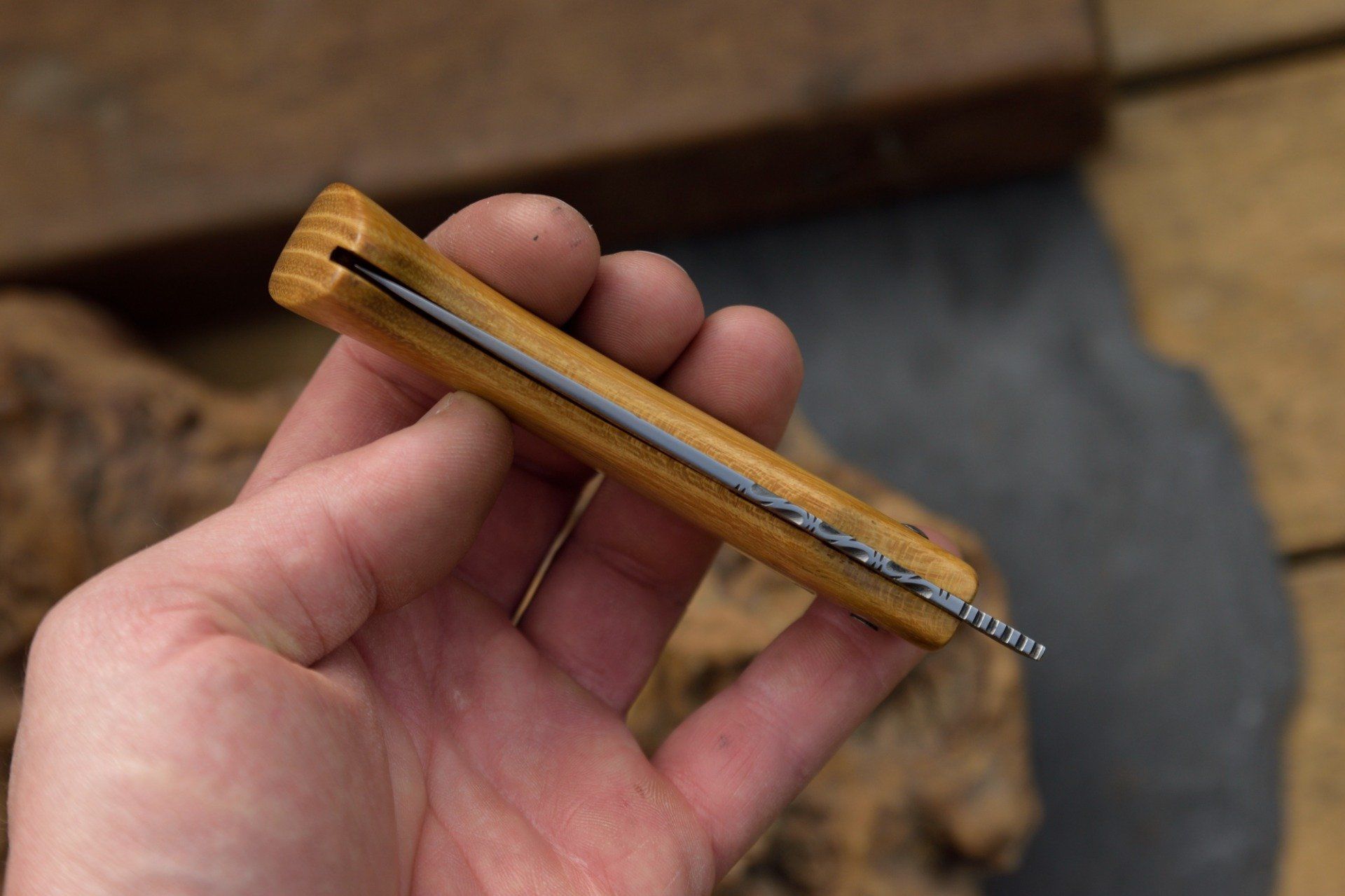 Couteau pliant, système deux clous, manche monobloc en Robinier
