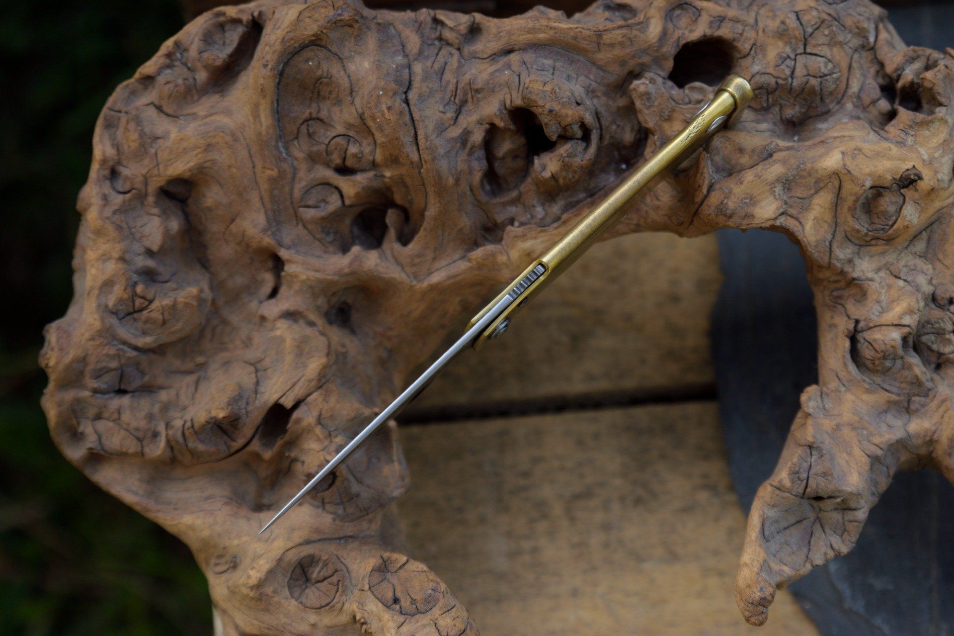 Couteau pliant à friction, système deux clous, manche en laiton