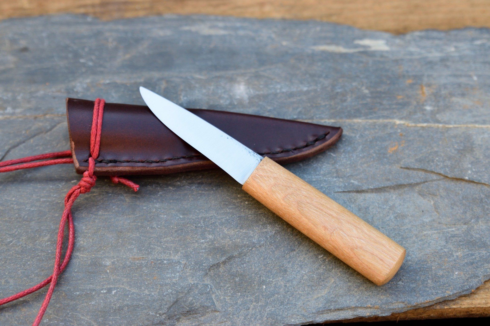 Couteau utilitaire 13cm, Manche en Frêne, Etui cuir moulé