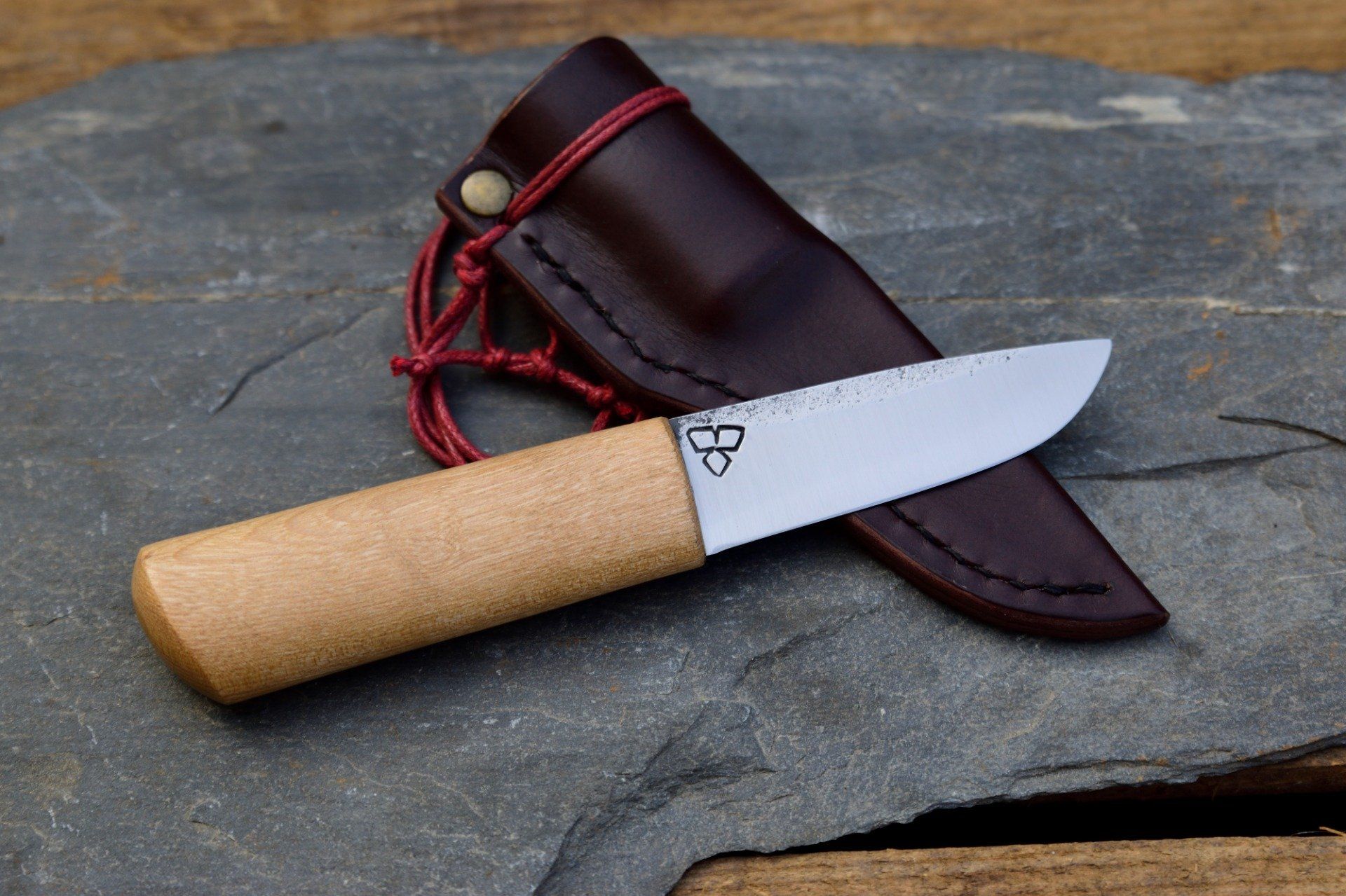 Couteau Utilitaire - couteau de cou, forgé dans un ressort de voiture, manche en Frêne.