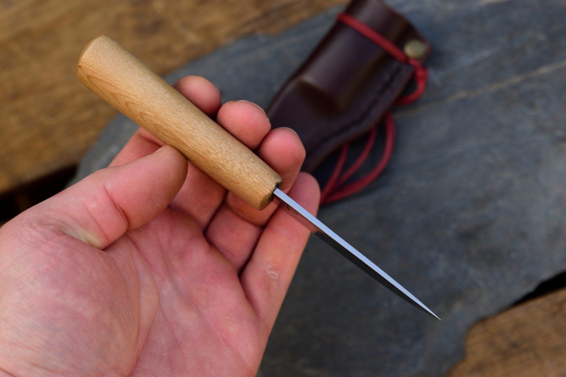 Couteau utilitaire 17cm, Manche en Frêne, Etui en cuir moulé