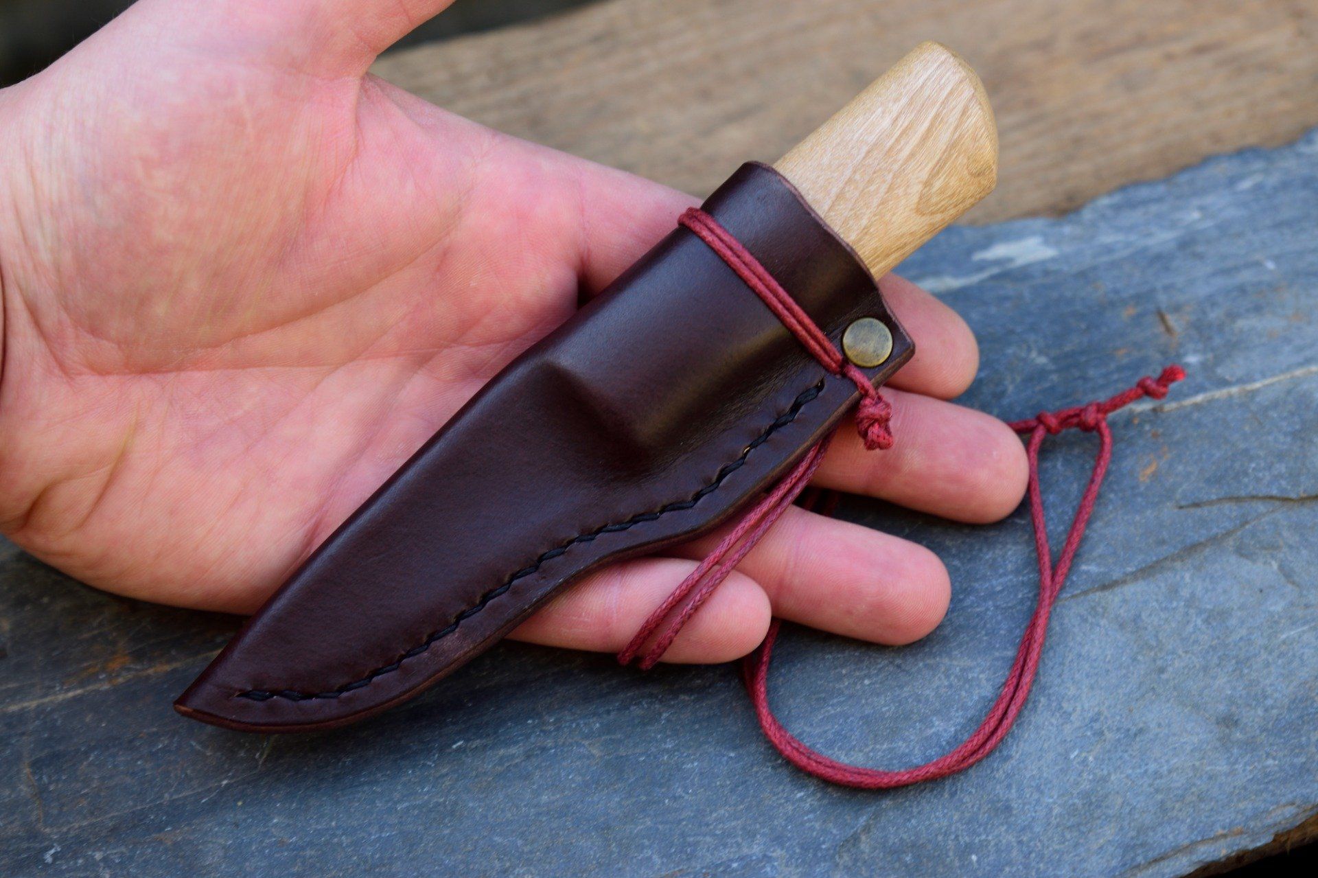 Etui en cuir tannage végétal 2mm, moulé et cousu point sellier. Couture coté tranchant