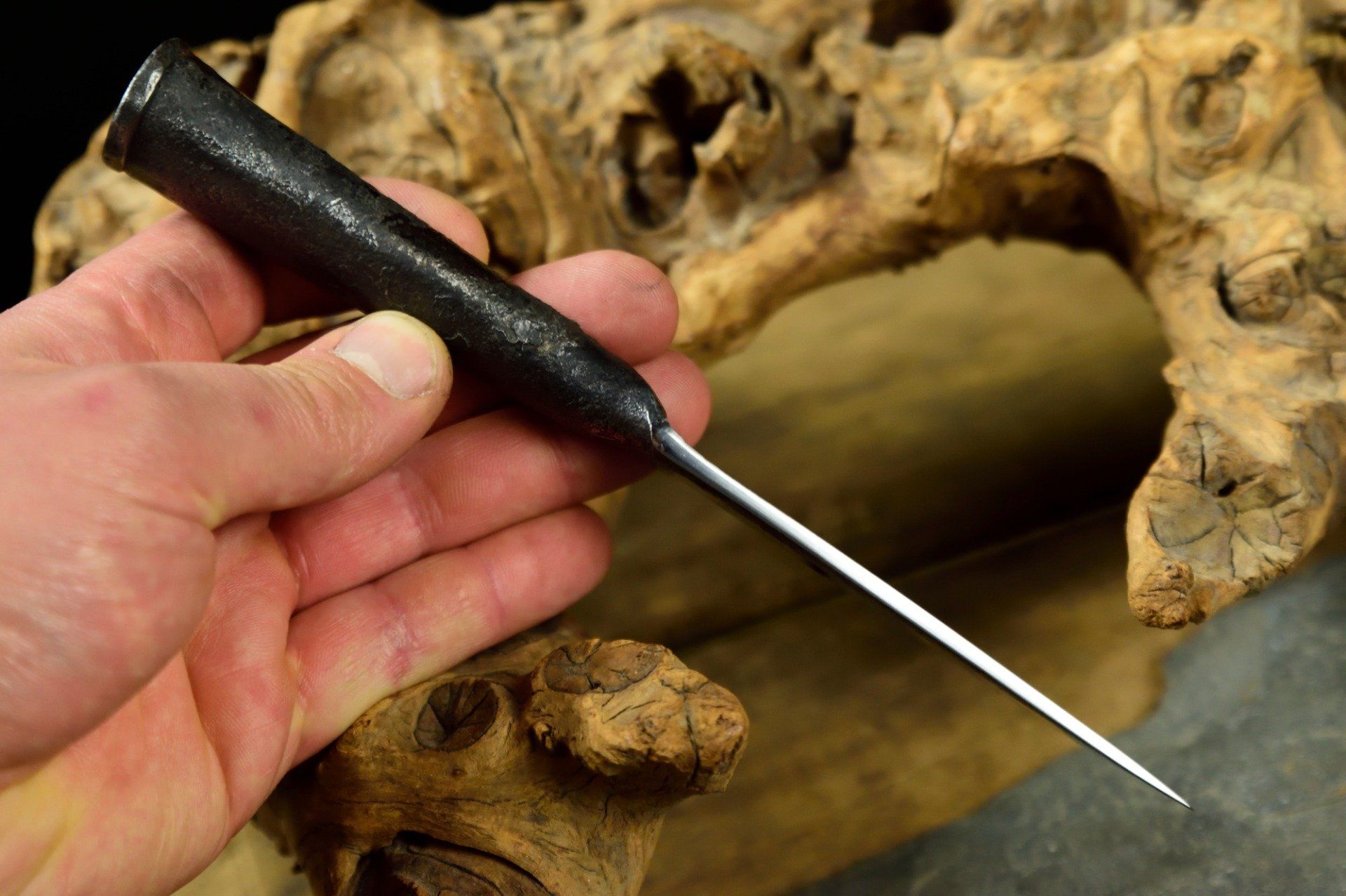Brasure au cuivre sur la jonction du manche roulé.