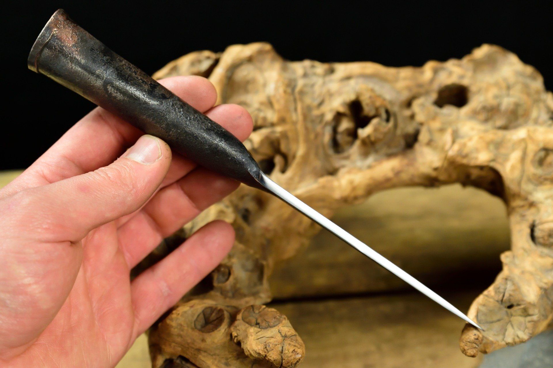 Brasure au cuivre sur la jonction du manche roulé.